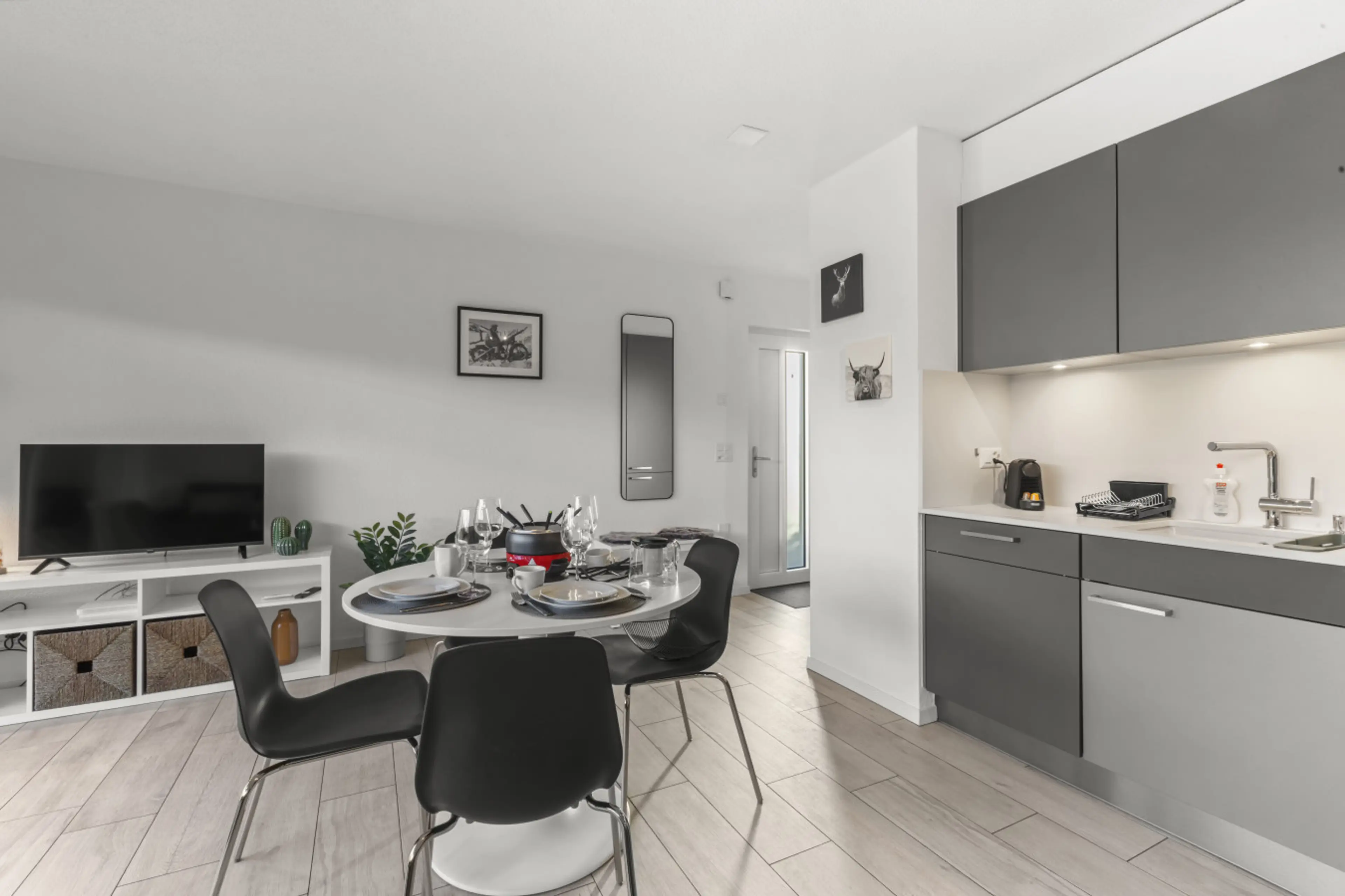Appartement neuf et meublé avec soin, idéalement situé à Saxon. À proximité des domaines skiables et des sentiers de randonnée, il offre un accès routier facile aux activités de montagne en toute saison. Il comprend une chambre avec lit double, un salon avec canapé-lit, une cuisine entièrement équip...